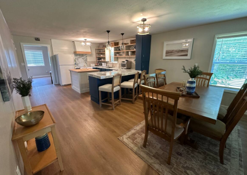 Lake Point Cottage #6 is a beautifully remodeled 1960s lake house that combines vintage charm with modern comfort.
